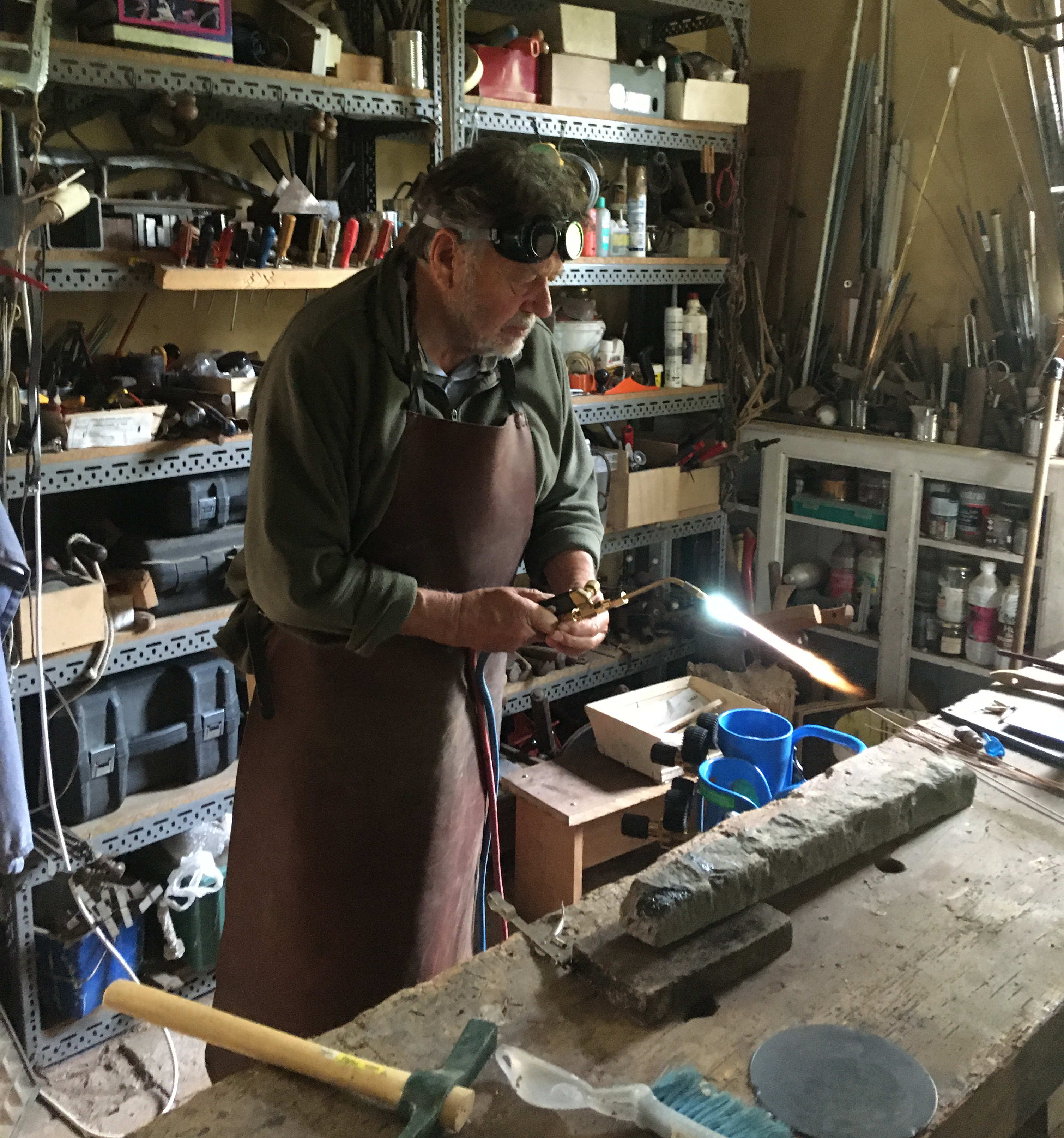 Dominique Beaufils prend le feu du volcan et avec le rêve de l’alchimiste, transforme la pierre de Volvic en cristal de ténèbres.